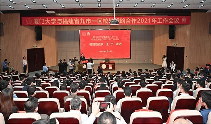 福建省省长王宁在厦门大学与福建省九市一区校地战略合作2021年工作会议中表示:福建正处在全方位推动高质量发展超越的重要时刻,百年厦大也即将开始新征程。希望厦门大学充分发挥大学创新源头的优势和基础研究的力量,有效对接地方产业发展需要,持续深化校企合作,不断扩大成果。